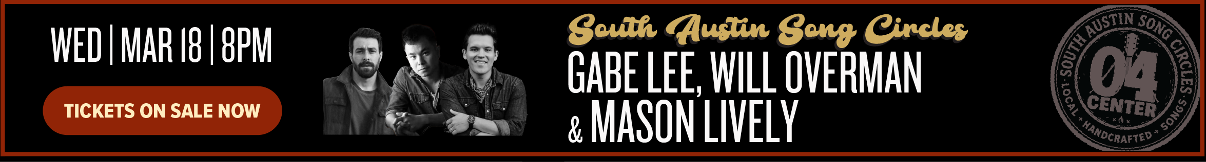 SOUTH AUSTIN SONG CIRCLE: GABE LEE, WILL OVERMAN & MASON LIVELY3/18/26